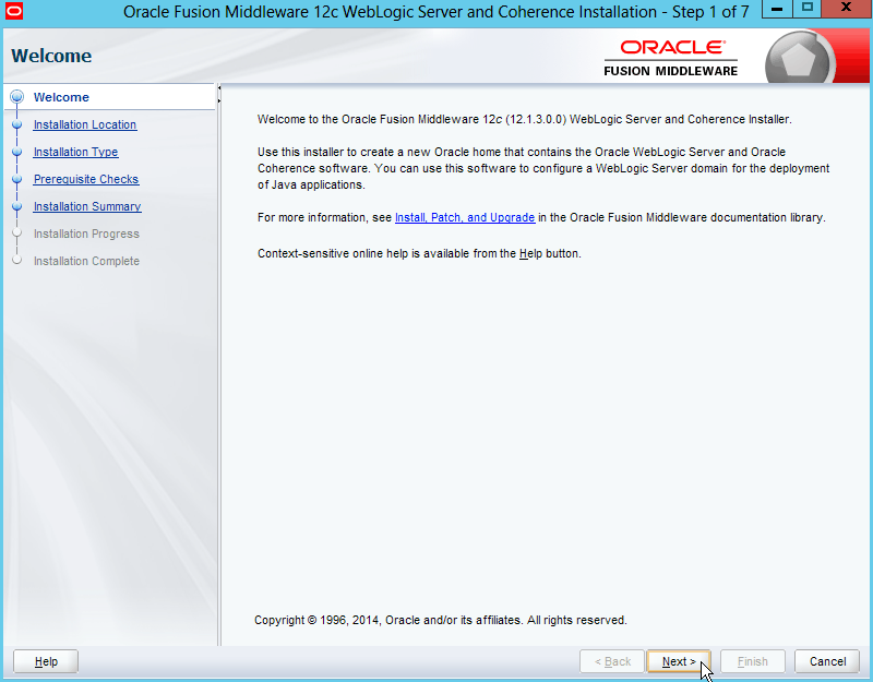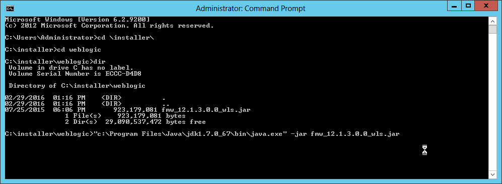 Fig. 008 Change to C:\installer\weblogic directory and then run java -jar fmw_12.1.3.0.0_wls.jar