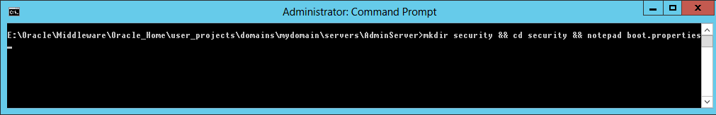 Fig. 054 Change directory by typing cd security then create a text file boot.properties with notepad