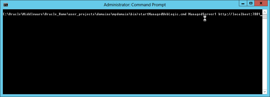 Fig. 048 At the domain bin directory, run startManagedWebLogic.cmd ManagedServer1 http://localhost:7001 to start the managed server for the first time.