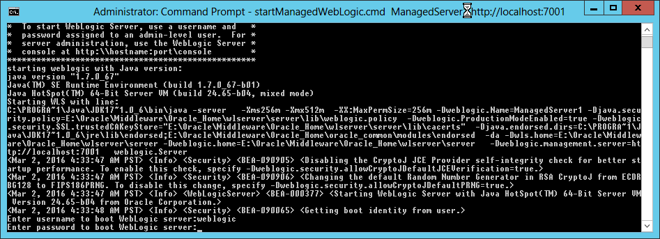 Fig. 046 Go back to the domain bin directory and start the administration server by running startWeblogic.cmd