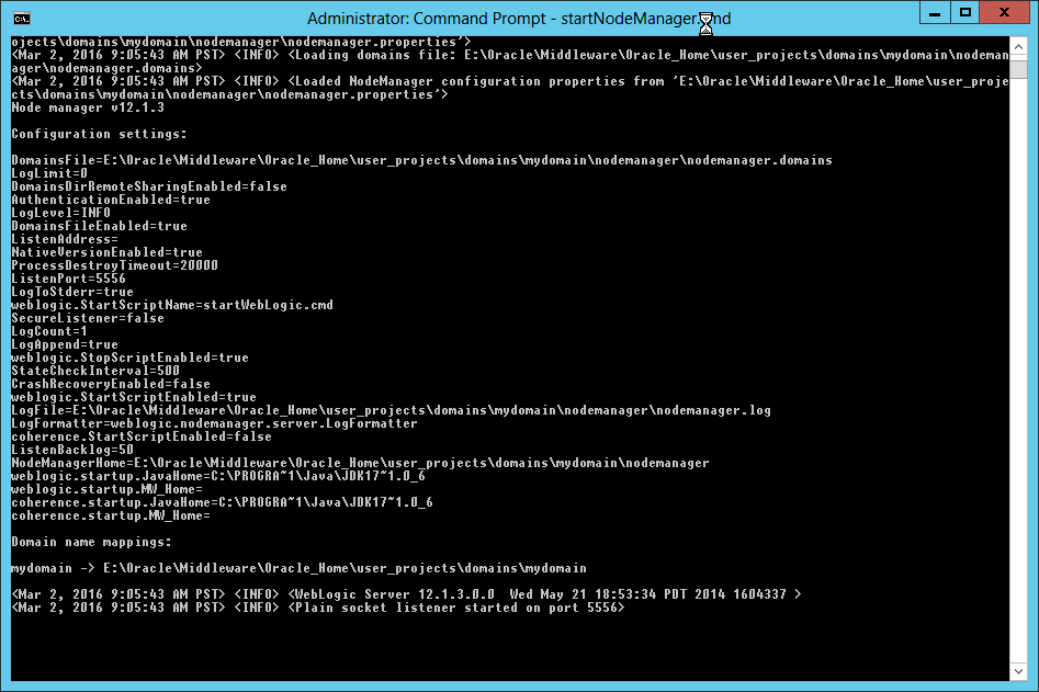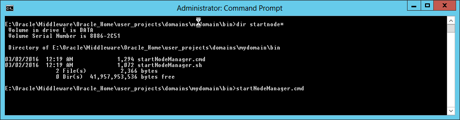 Fig. 080 Go to the domain bin directory and run startNodeManager.cmd to run the node manager service with the new nodemanager.properties settings