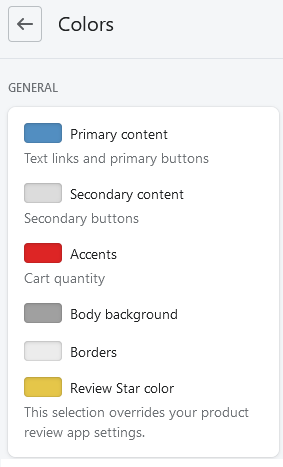 if you select Colors, we get the color settings that you can change.