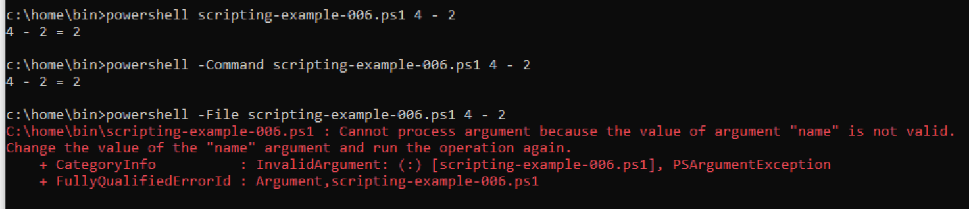 ## (a) To allow hyphen (-) to be used as a script parameter e.g. to run yourscript.ps1 4 - 2 ## use : powershell yourscript.ps1 4 - 2 ## or : powershell -Command yourscript.ps1 4 - 2 ## instead of : powershell -File yourscript.ps1 4 - 2