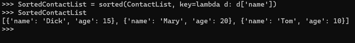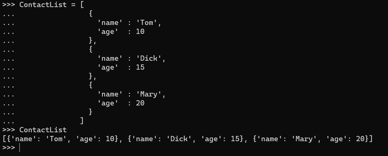 ## Example we create a list of contact data, each list item is a dictionary with keys 'name' and 'age'